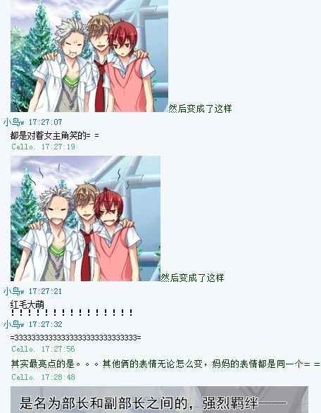 然后,就是在部长CG中客串的春季三人组的吐槽= =你们纯粹是来抢镜头的吧不称职的人肉背景们!!!还有妈妈啊= =明明别人的表情都变了,那三张连起来看,怎么看您都是一个表情一个动作的啊OTL不用那么强作淡定= =|||||||||||||||